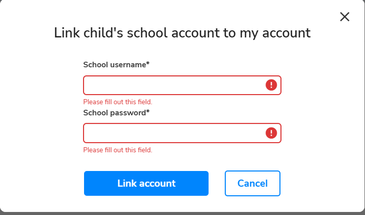Yandaki gibi bir sayfa açılacak; oraya çocuğunuzun username ve password'unu girin ve “Link account” deyin.